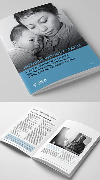 This project included the design, layout, photography selection, and infographics for a 40-page two-colour booklet. This guide was created to be an easy-to-use source for service providers who are working with mothers and their children who are facing hardship and duress as they wait for immigration and family issues to be resolved.